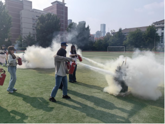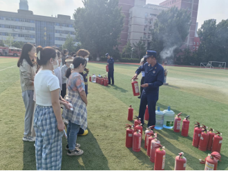 最后环节中,消防队员现场演示了干粉灭火器的使用技巧,并指导师生分组实操。参加演练师生按照“提、拔、握、压”四步法,成功扑灭油盆火源。消防队员特别提醒:“灭火器仅适用于初起火灾,若火势失控,务必优先逃生并报警。”
