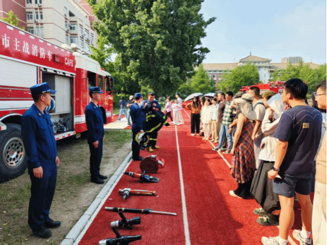 沈河区消防大队南塔消防站不仅全程指导演练,还向师生展示了消防车携带救援设施,讲解救援装备的功能和使用场景。后勤基建管理处、校医院等部门协同保障演练安全,沈阳校区相关学院和部门负责同志及师生到场观摩并共同参与。师生纷纷表示:常态化消防演练是校园安全的重要抓手,师生需时刻绷紧安全弦。