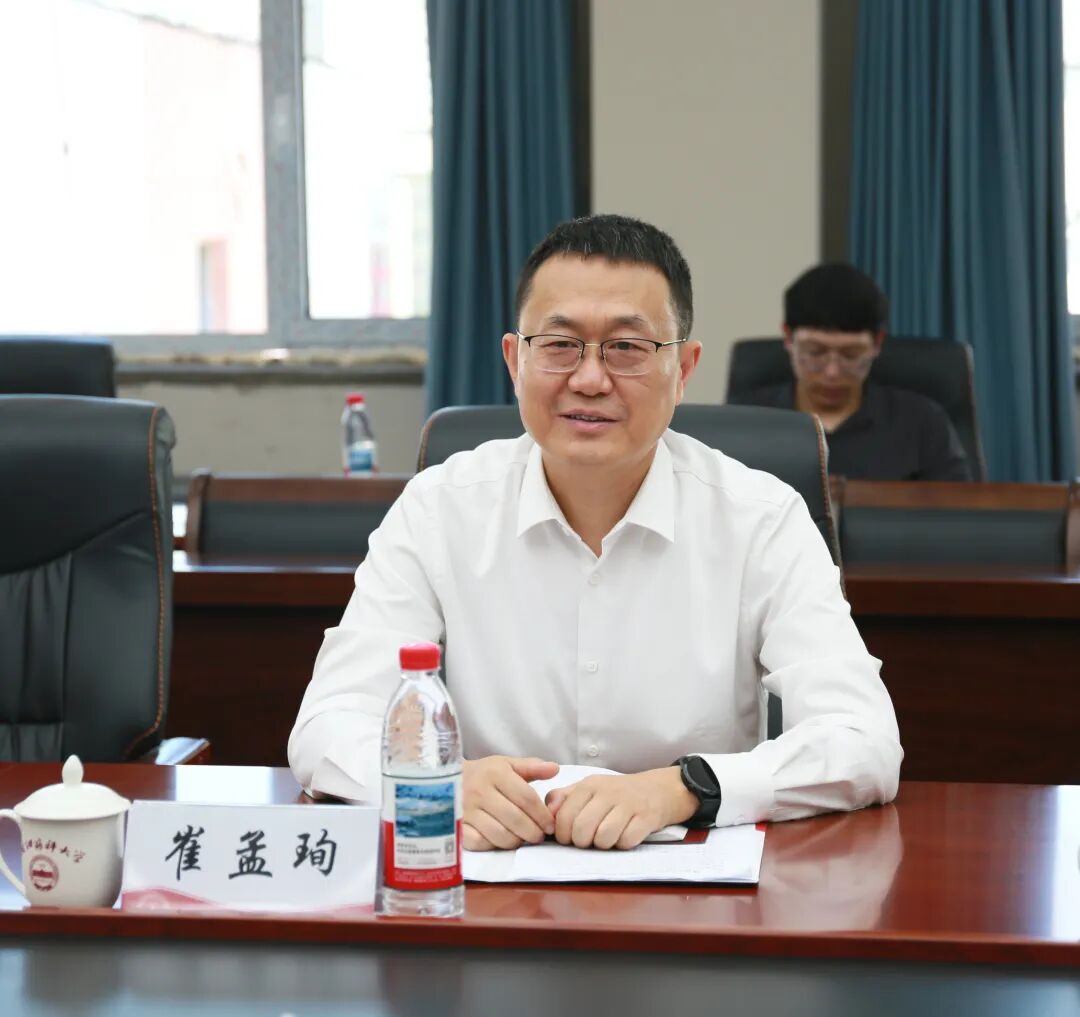 崔孟珣对学校的热情接待表示感谢,并高度赞誉我校在生物医药领域的学术影响力与产业贡献。他介绍了园区产业发展布局及生物医药领域的推进情况,特别指出今年上半年经开区医药工业产值实现显著增长,占全市较大比重,增速较快。他表示,看到学校与区内众多企业已建立起紧密多元的合作关系,倍感振奋和鼓舞。当前,经开区正全力推进生物医药产业集群建设,迫切期望与学校进一步深化合作,共同推动产业提质增效。他希望,双方能够在既有合作基础上,共建高水平研发团队,打造新型研发机构,进一步细化成果转化机制,加速创新链与产业链深度融合,为构建具有竞争力的集群式产业园区、孵化健康产业卓越集群注入持续动力、奠定坚实基础。