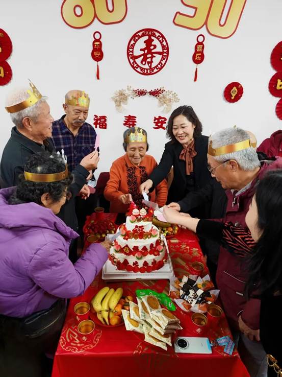 在温馨的旋律中,全场齐唱《生日快乐》歌,寓意幸福与长寿的“80”“90”造型生日蛋糕缓缓推出,寿星们共同许愿并吹灭蜡烛,翟鑫与老寿星们一起切分蛋糕,将组织的温暖与祝福传递至每位老同志。