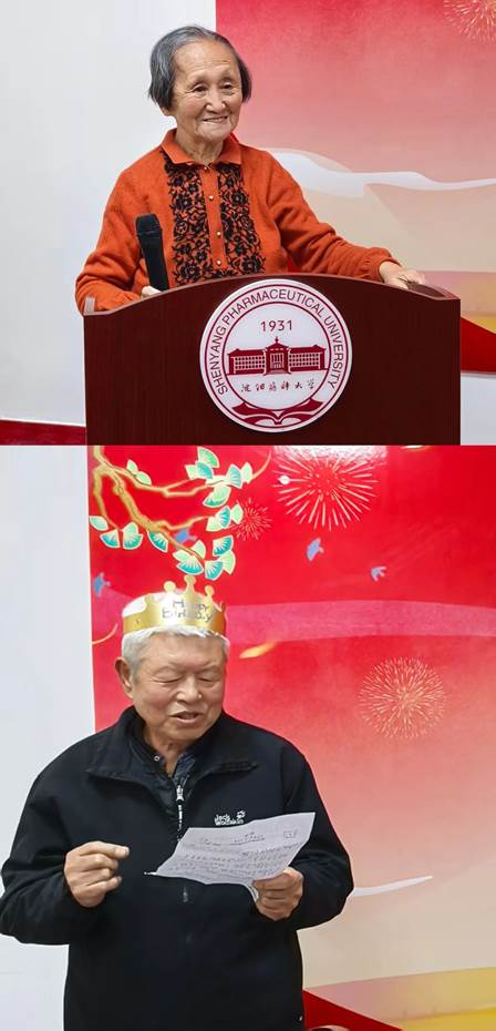 随后,90岁的文慧芝老师与80岁的宫锡坤老师作为寿星代表发言,与在场的老同志们共同回顾执教岁月,深情追忆奋斗历程。他们表示,在沈药工作的数十载,亲历了沈药逐步走向蓬勃发展的每一步足迹。如今虽已退休,但沈药的一草一木、一景一物仍时时牵挂于心,看到学校取得的丰硕成果,倍感骄傲与荣光,并深情祝愿学校薪火相传、弦歌不辍,在医药教育事业的道路上再创佳绩、再谱新篇。
