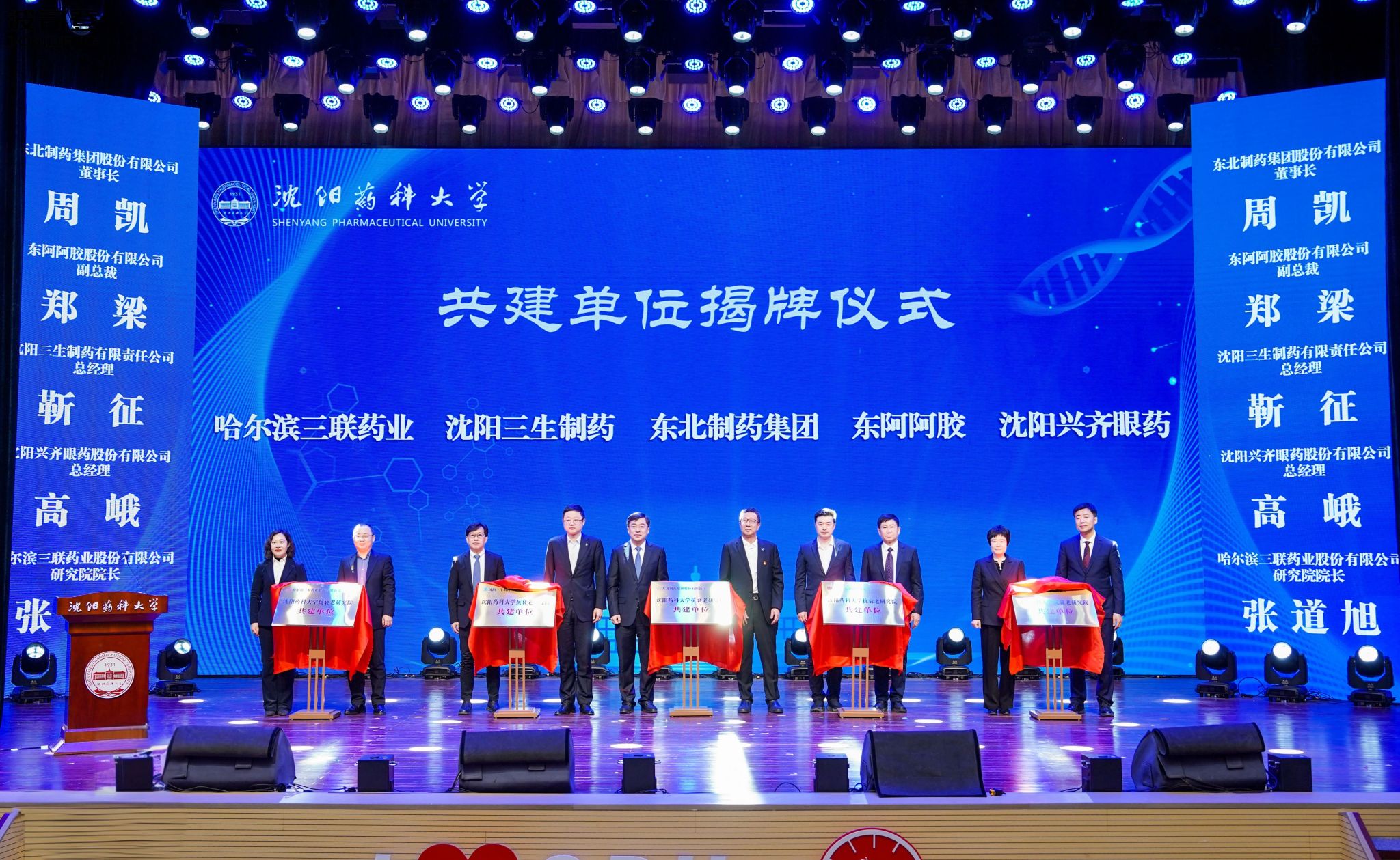 学校领导班子成员关雪峰、李可强、宋少江、路金才、翟鑫,东北制药集团股份有限公司董事长周凯、东阿阿胶股份有限公司副总裁郑梁、沈阳三生制药有限责任公司总经理靳征、沈阳兴齐眼药股份有限公司总经理高峨、哈尔滨三联药业股份有限公司研究院院长张道旭揭牌研究院共建单位。