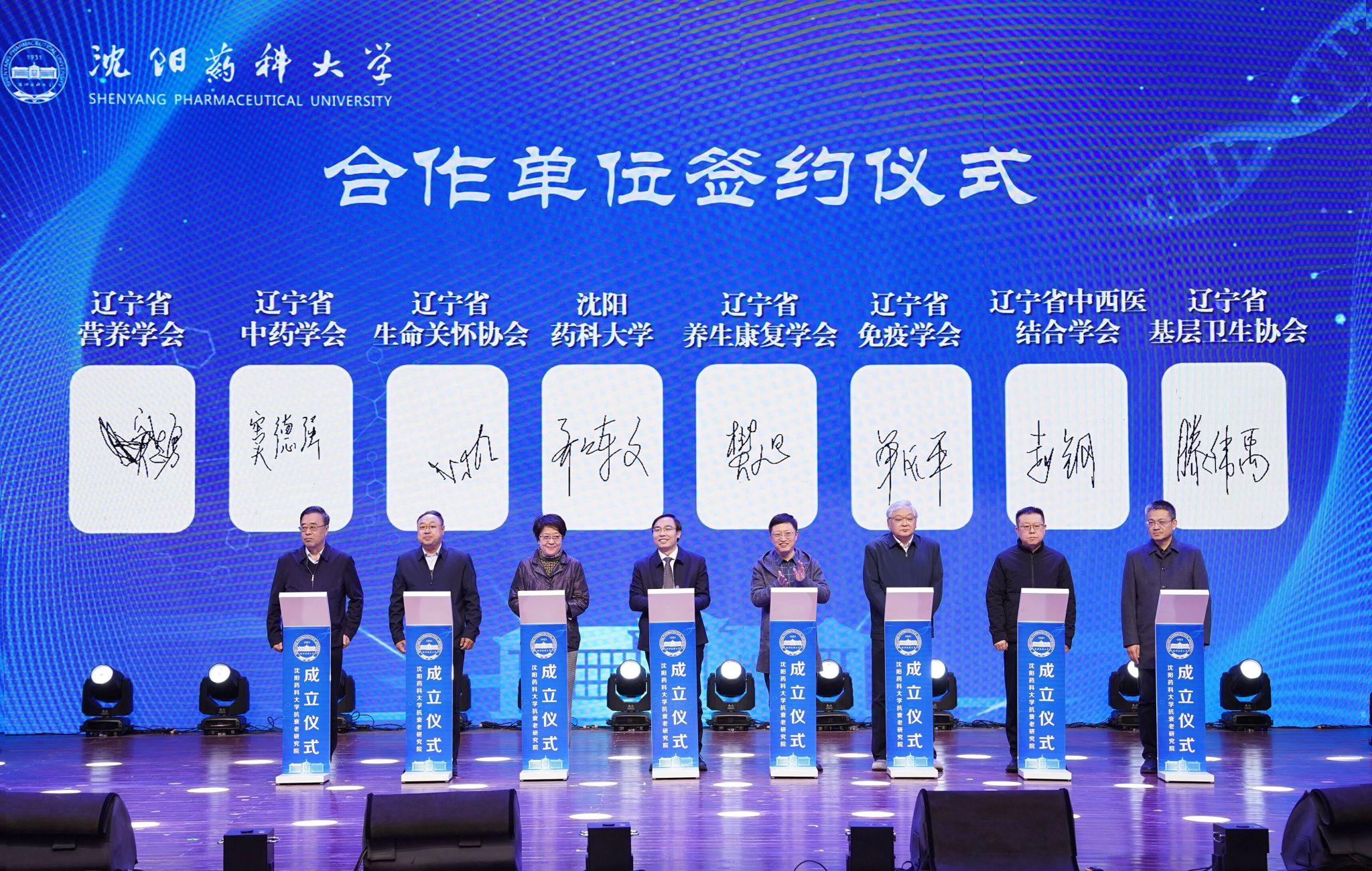 张静生,刘克斌,李振权,辽宁省卫健委副主任代颖,姚新生院士团队代表、暨南大学教授栗原博,高明宇,校党委副书记、牵头负责学校行政工作的副校长齐炼文共同启动沈阳药科大学抗衰老研究院。研究院的成立标志着这一跨领域协同创新平台正式启航。