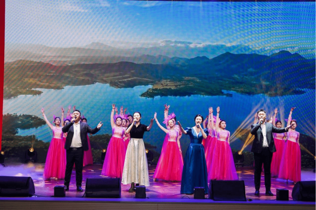 终章《美丽中国》压轴亮相,教师歌声深情悠扬、婉转传情,各族服饰舞者身着特色盛装、并肩翩跹起舞,舞姿交融尽显风情,歌声回荡凝聚心声,生动诠释各民族如石榴籽般紧紧相拥、同心相依的深厚情谊,传递同心筑梦力量,铸牢中华民族共同体意识。