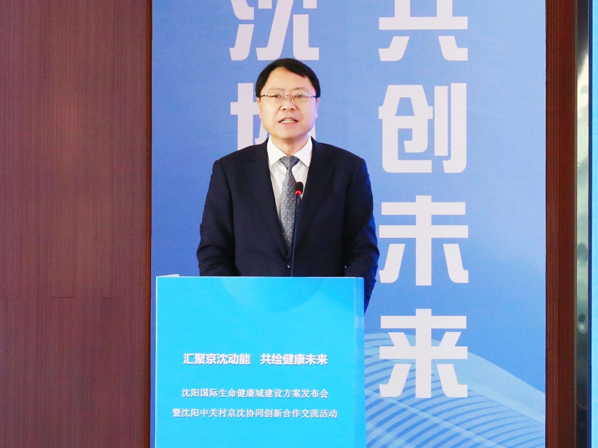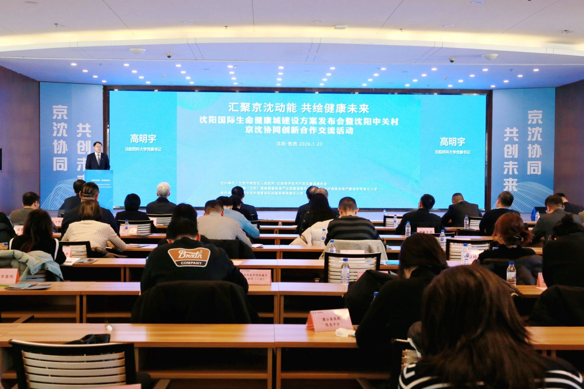 立足学校优势资源,擘画校地协同赋能生命健康产业高质量发展的新蓝图。1月23日下午,“汇聚京沈动能 共绘健康未来”沈阳国际生命健康城建设方案发布会暨沈阳·中关村京沈协同创新合作交流活动在沈阳·中关村智能制造创新中心成功举行。我校党委书记高明宇致辞并为“沈阳药科大学生命健康城技术转移中心”揭牌。