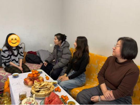 23日上午,家访团一行四人来到小艾同学家中。小艾和家人阳光善良、热情温暖,让家访团成员感到非常亲切。围坐地毯上,暖心拉家常,将铸牢中华民族共同体意识的理念融入话语中。各位老师鼓励学生珍惜同窗的民族情谊,践行民族团结,让同心同行的暖流在青春路上生生不息。