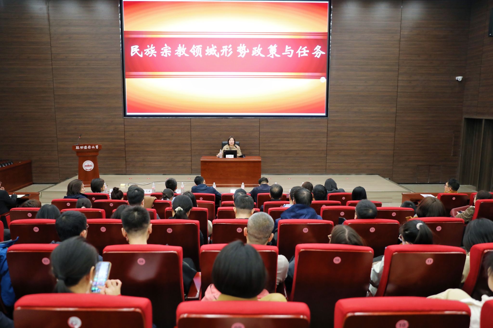 张小莉教授紧扣当前民族宗教领域新形势新任务,系统解读新时代党的民族宗教工作理论和方针政策。立足新时代做好民族工作重大意义,深入阐释铸牢中华民族共同体意识的深刻内涵、核心要义和实践路径,引导师生深刻认识“五个共同”的中华民族历史观和“四个与共”的中华民族共同体理念。聚焦坚持我国宗教中国化方向,积极引导宗教与社会主义社会相适应等内容,阐明了新时代党的宗教工作的科学理论、基本方针、本质要求、重要政策、重大原则等,并结合高校实际剖析风险隐患。报告理论扎实、案例鲜活、针对性强,既深化了广大干部师生对民族宗教政策的理解把握,也为扎实推进学校民族宗教工作提供了有力指导。